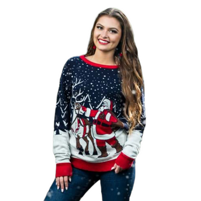 Women's Santa and Reindeer Ugly Christmas Sweater