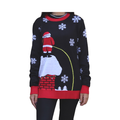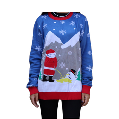Women's Santa Peeing on Melting Snowman Ugly Christmas Sweater