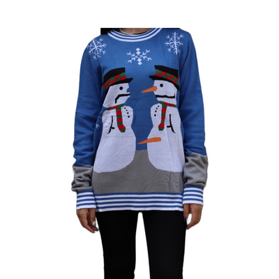 Women's Snowman Nose Thief Blue Christmas Sweater