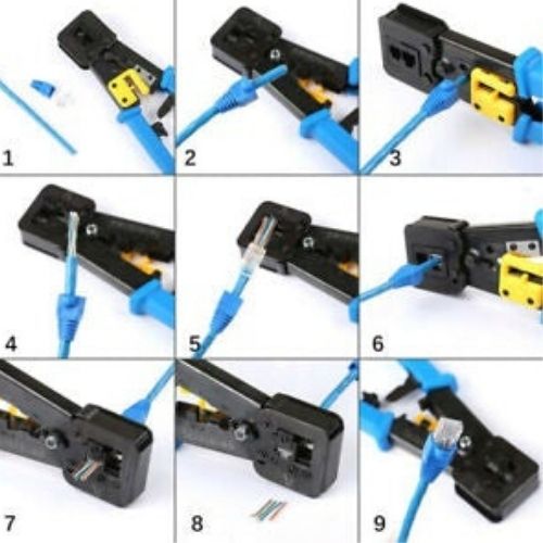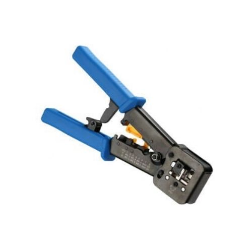 Fast and reliable ez crimping tool that crimps RJ45 modular plug for CCTV, Security, media and data communication by upholding a clean cut trims on RJ45/RJ11/12 end-pass-through 8 conductor.