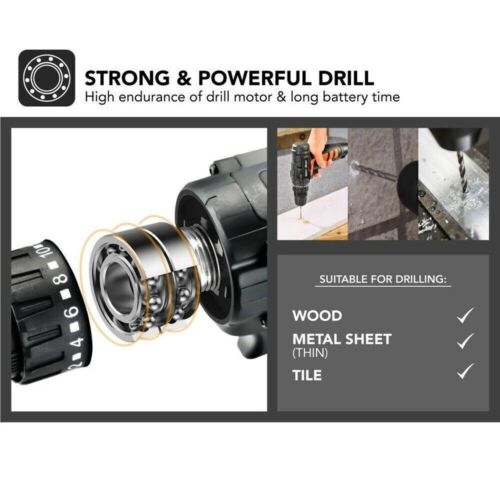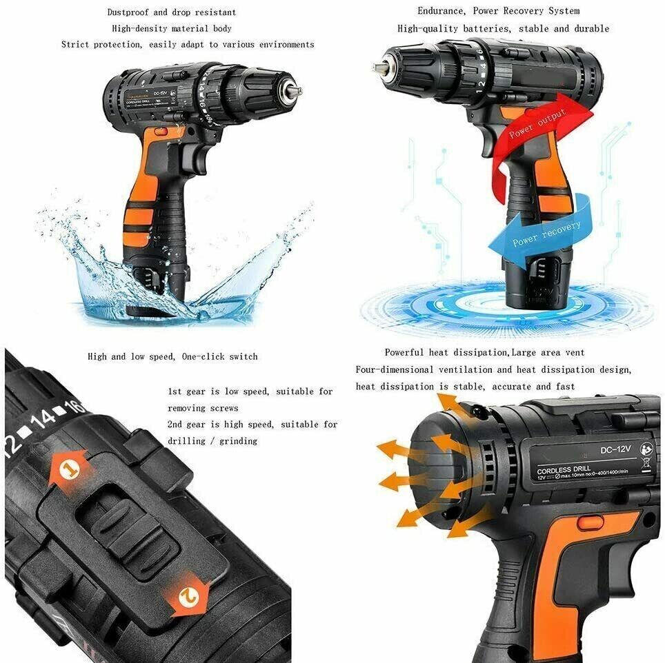 112Pcs 12V Cordless Drill Driver Set Household Hand Tool Kit w/ 2 Batteries