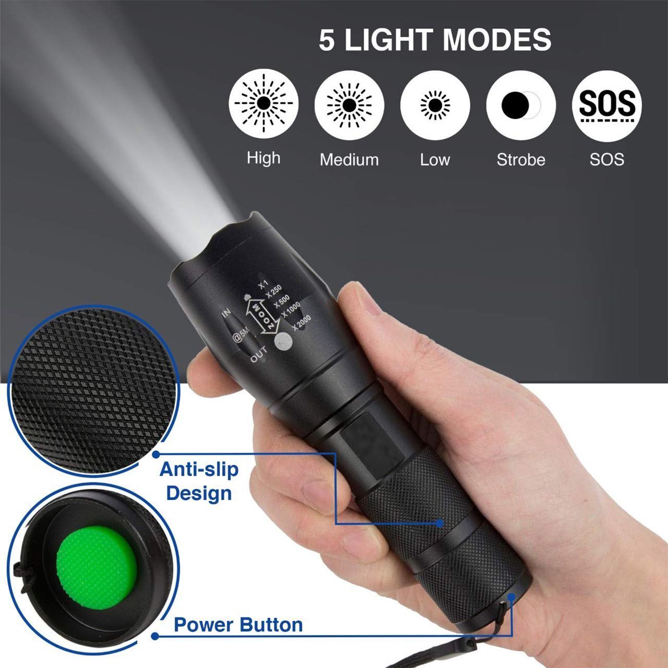 Torch Handheld Super Bright LED Rechargeable 2000LM Flashlight With 5 Modes