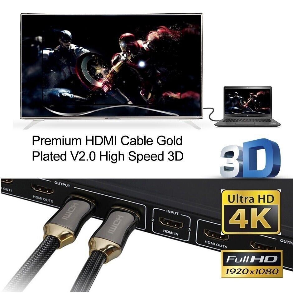 NEW Premium HDMI Cable v2.0 Ultra HD 4K 2160p 1080p 3D High Speed Ethernet