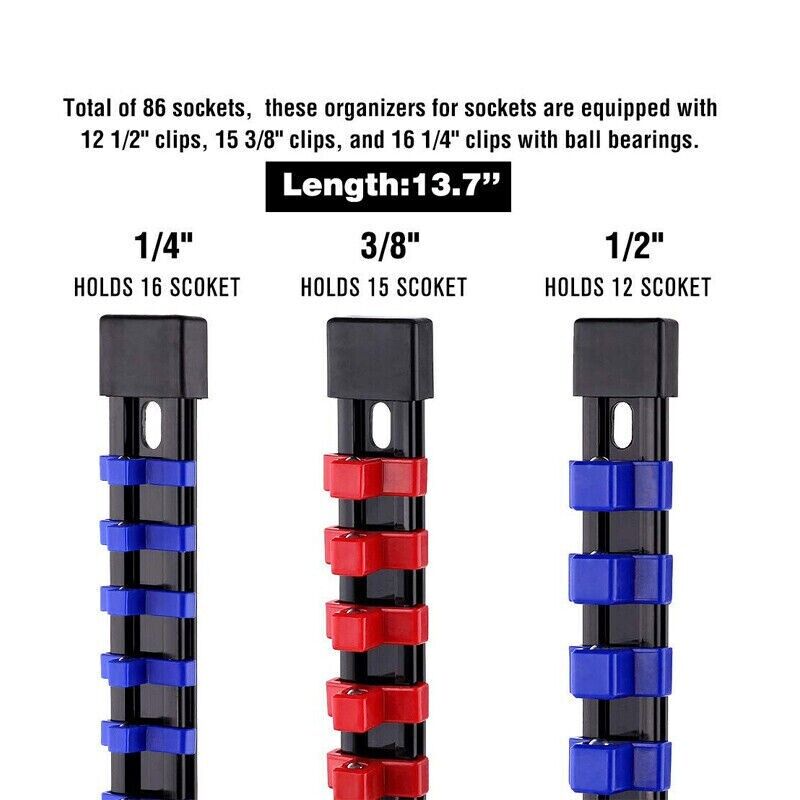 6PCS Socket Holder Storage tray Rail Rack Organizer Mountable Sliding1/4 3/8 1/2