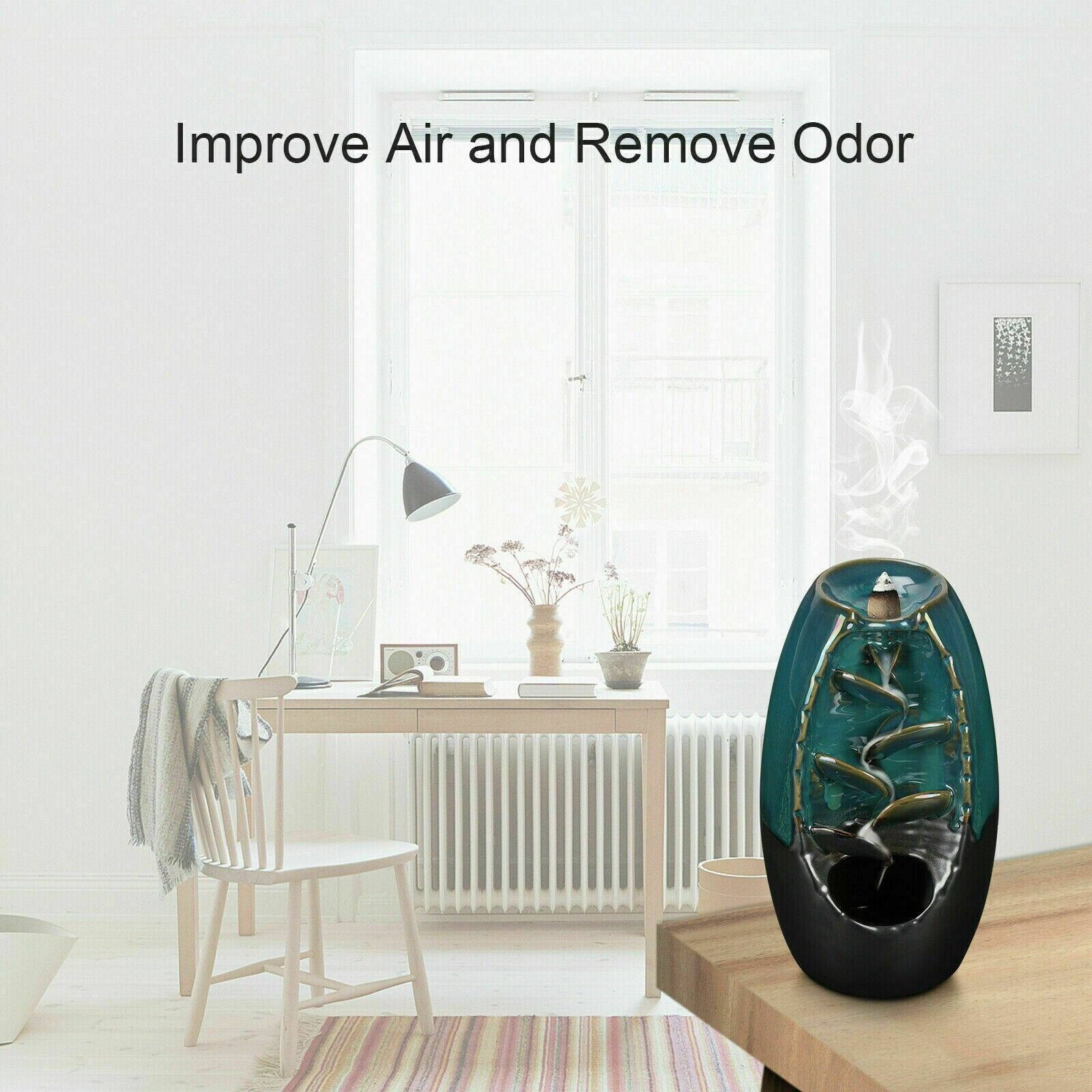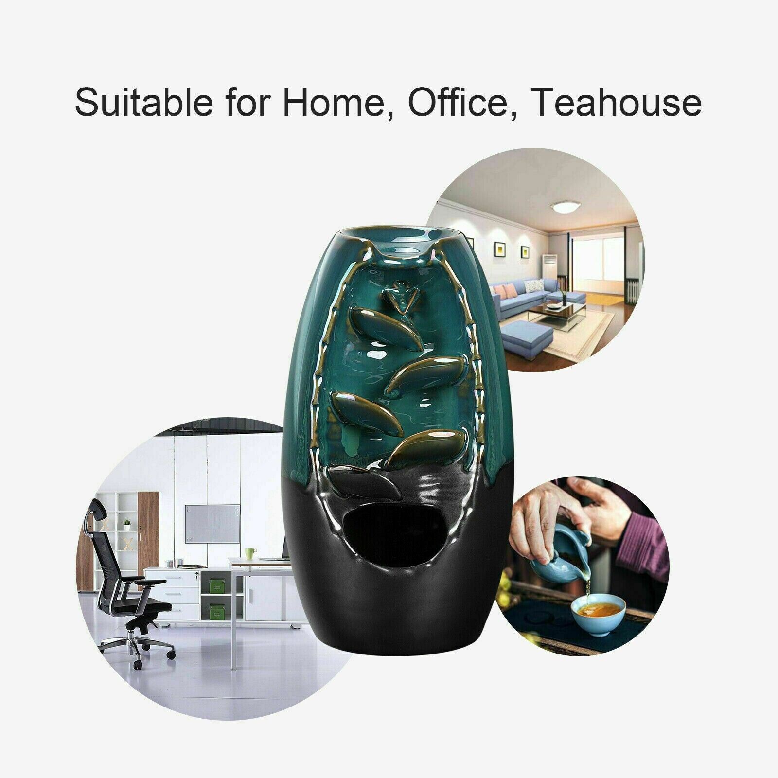Ceramic Incense Waterfall Burner Backflow Smoke Censer Holder w/ 100 Free Cones