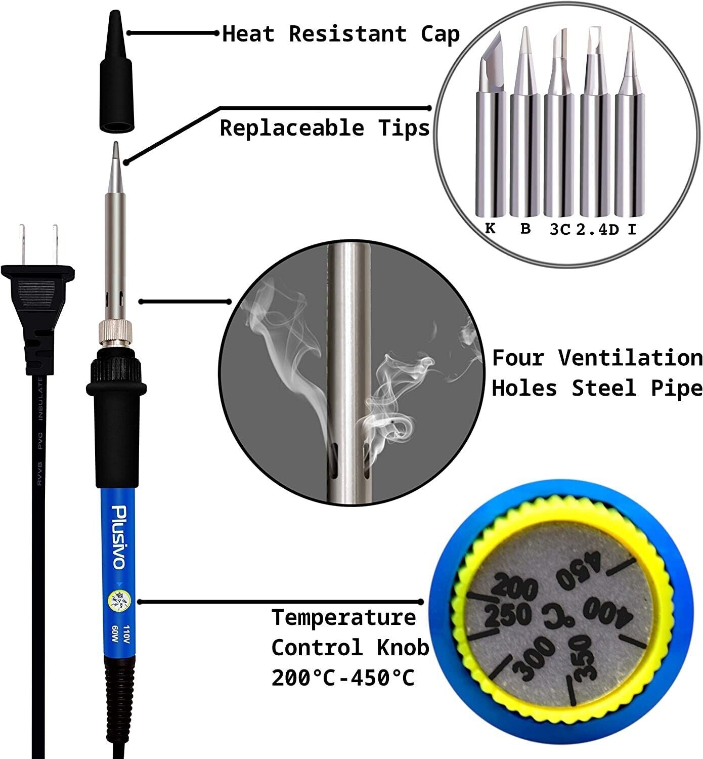20Pcs Soldering Tips Iron Kit Electronic 60W Adjustable Temperature Welding Tool
