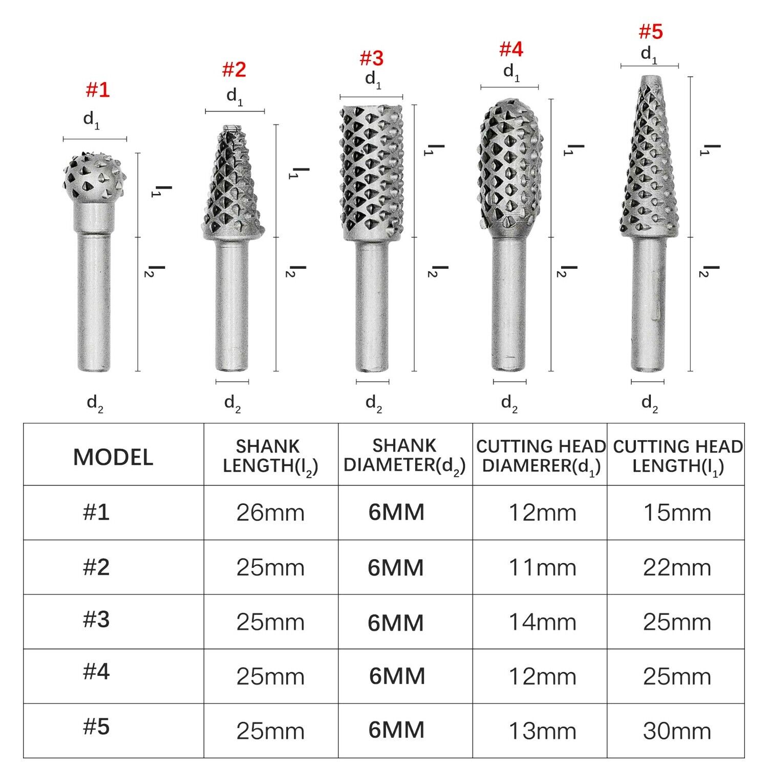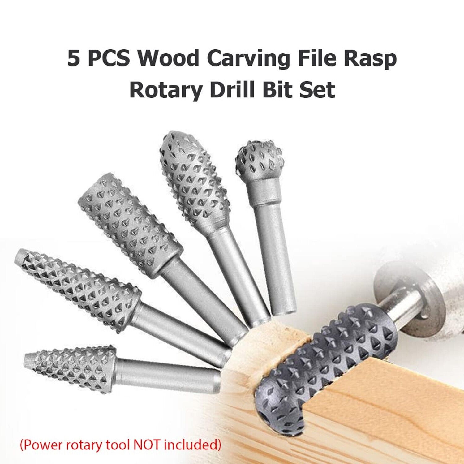 5Pcs Wood Working Cutter Drill Bits Rotary Bits Rasp For Wood Grinding Carving