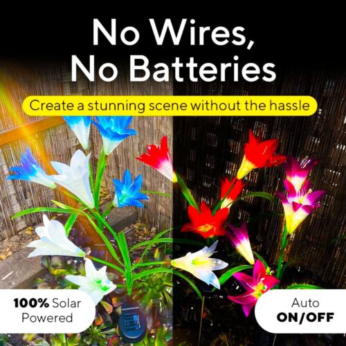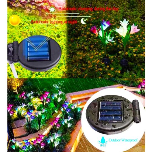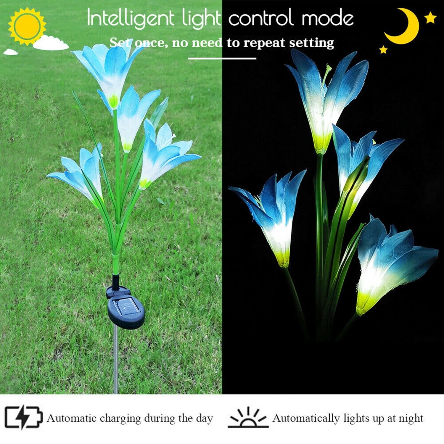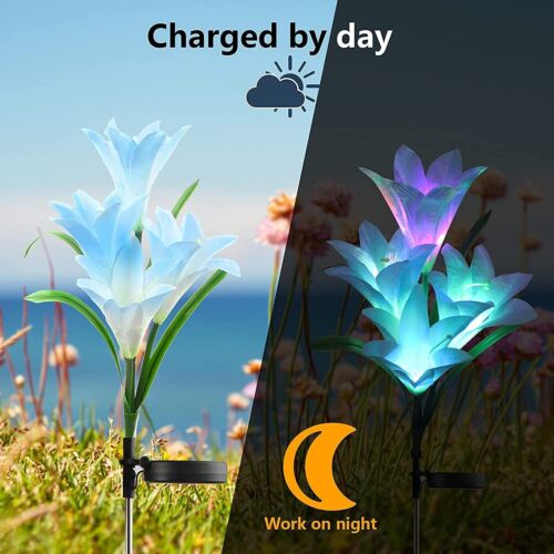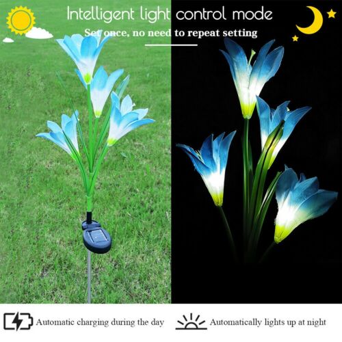 Waterproof Decor Lamp Yard LED Solar Lily Flower Garden Stake Light Outdoor Path