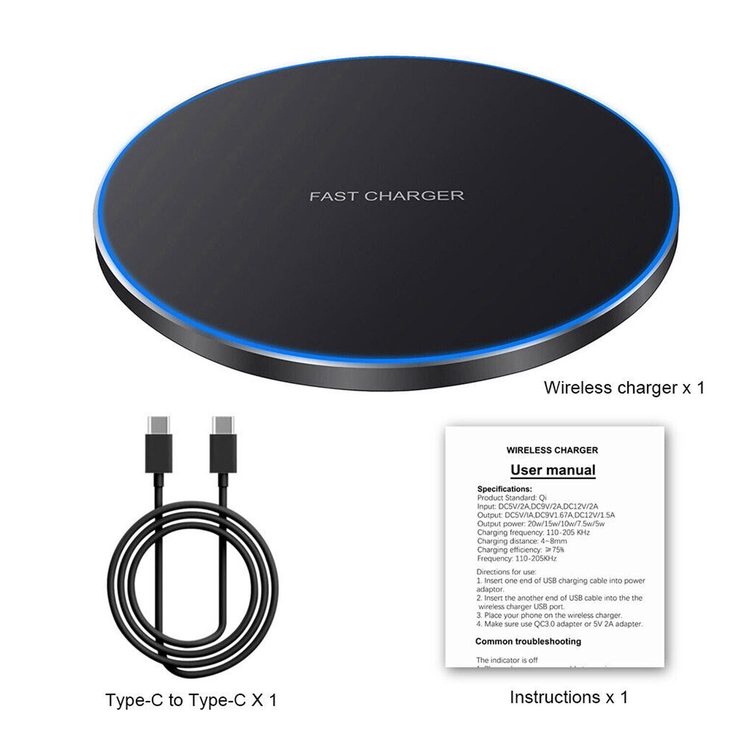 USB-C 30W Qi Fast Wireless Charger Charging Pad For Phone 11 X Max XR 8 Plus