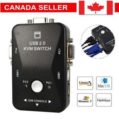 2 Port USB VGA KVM Switch Box For Mouse Keyboard Monitor Video Sharing Computer