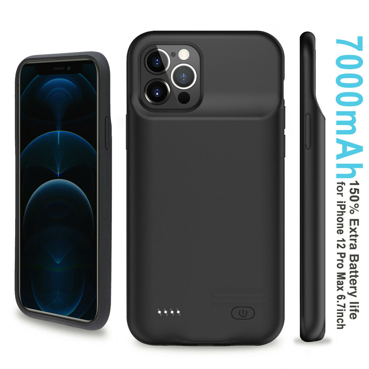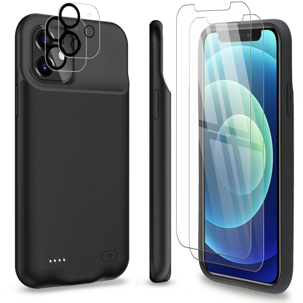 iPhone 12 Pro Max [7000mAh] Protective Charging Case+Screen&Lens Tempered Glass