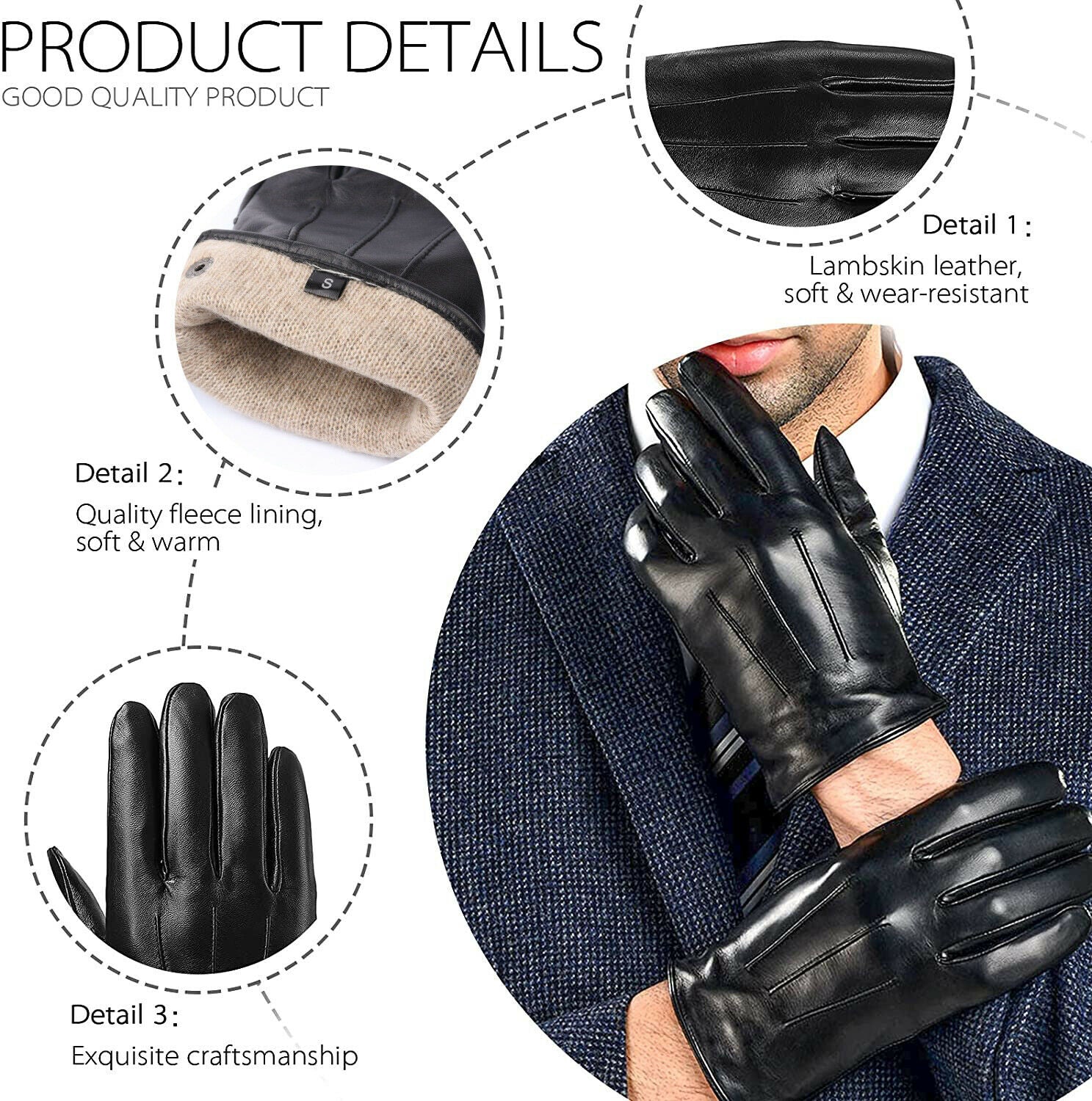 - 1x Genuine Sheepskin Leather Gloves 70% Cashmere Lined