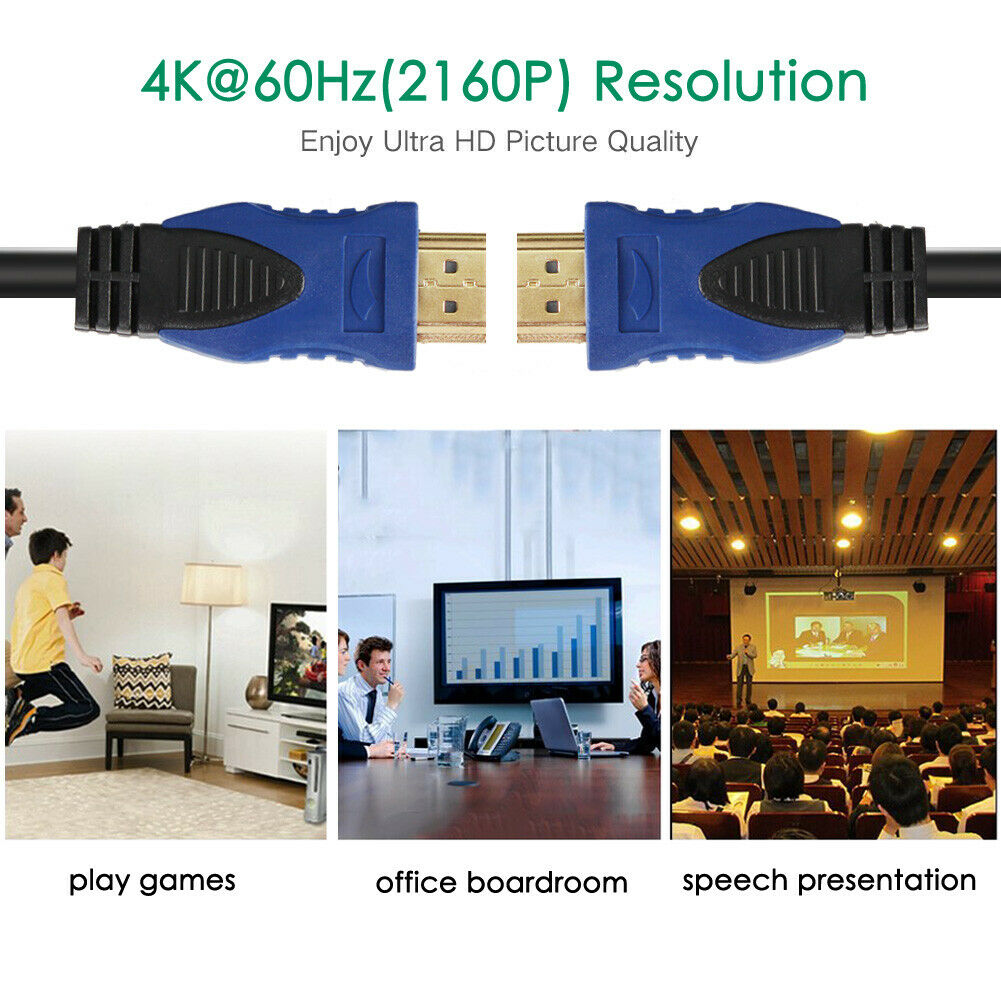 6FT 4K@60Hz Ultra HD HDMI Cable V2.0 High Speed 2160p UHD 3D CHROME HDTV Gold