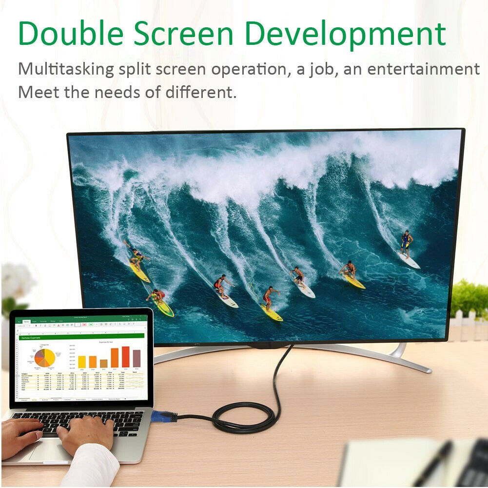 • High quality materials and Ultra Durability- 24K gold plated connectors (3mic on the copper shell and 15mic on the pins), 28/26AWG high purity copper conductor, triple shielding layer shielded, CL3 rated jacket, it makes the cable can transfer the signals in high speed and low loss, as well as with a durable quality.