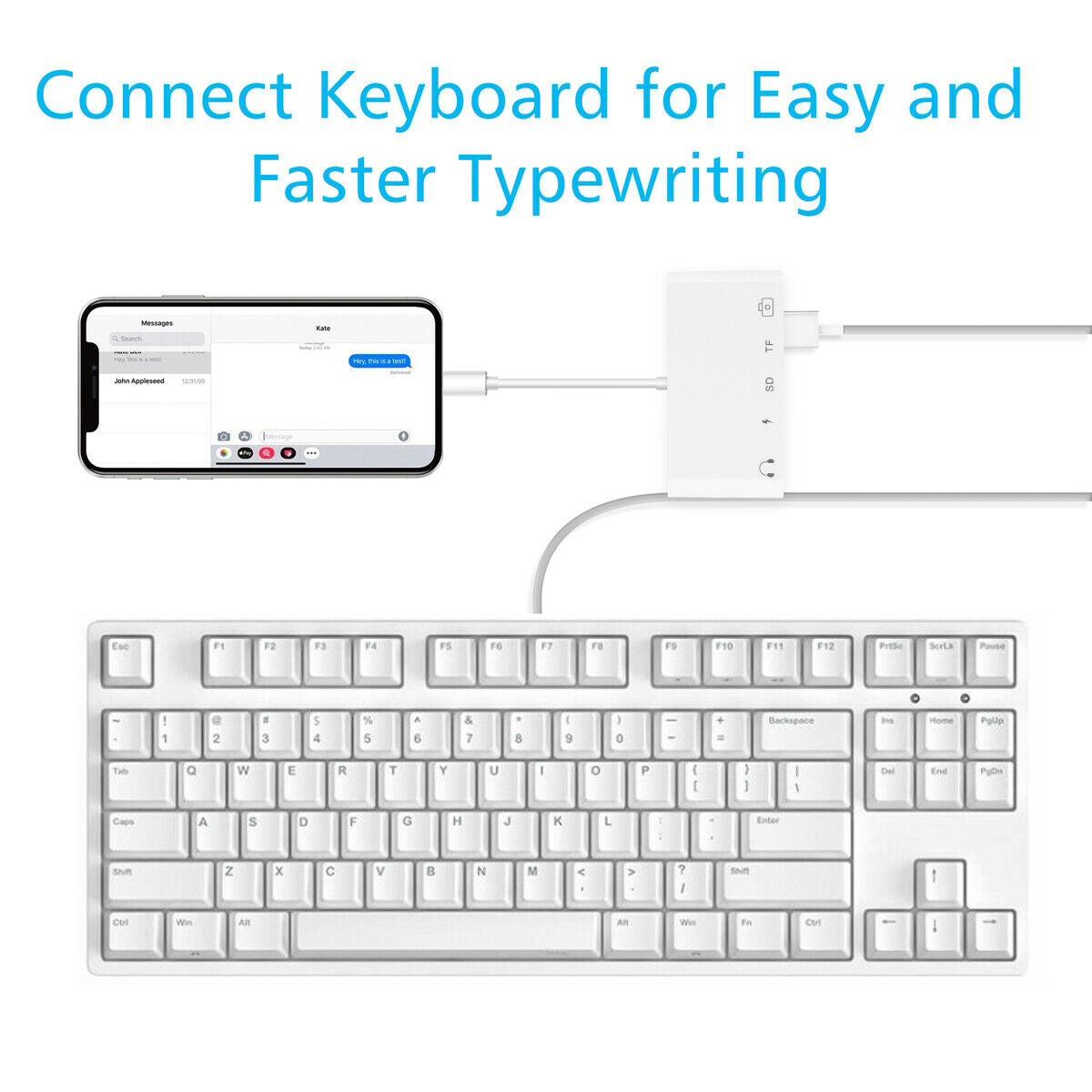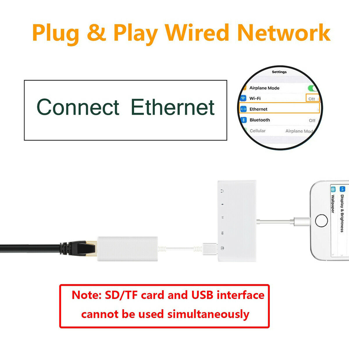 • 5-IN-1 Adapter: This lightning adapter allows you to expand a lightning port to 5 ports - 3.5mm audio, SD card slot, TF card slot, lightning charging port and USB A, you can use this adapter to charge, listen, Extended storage.
