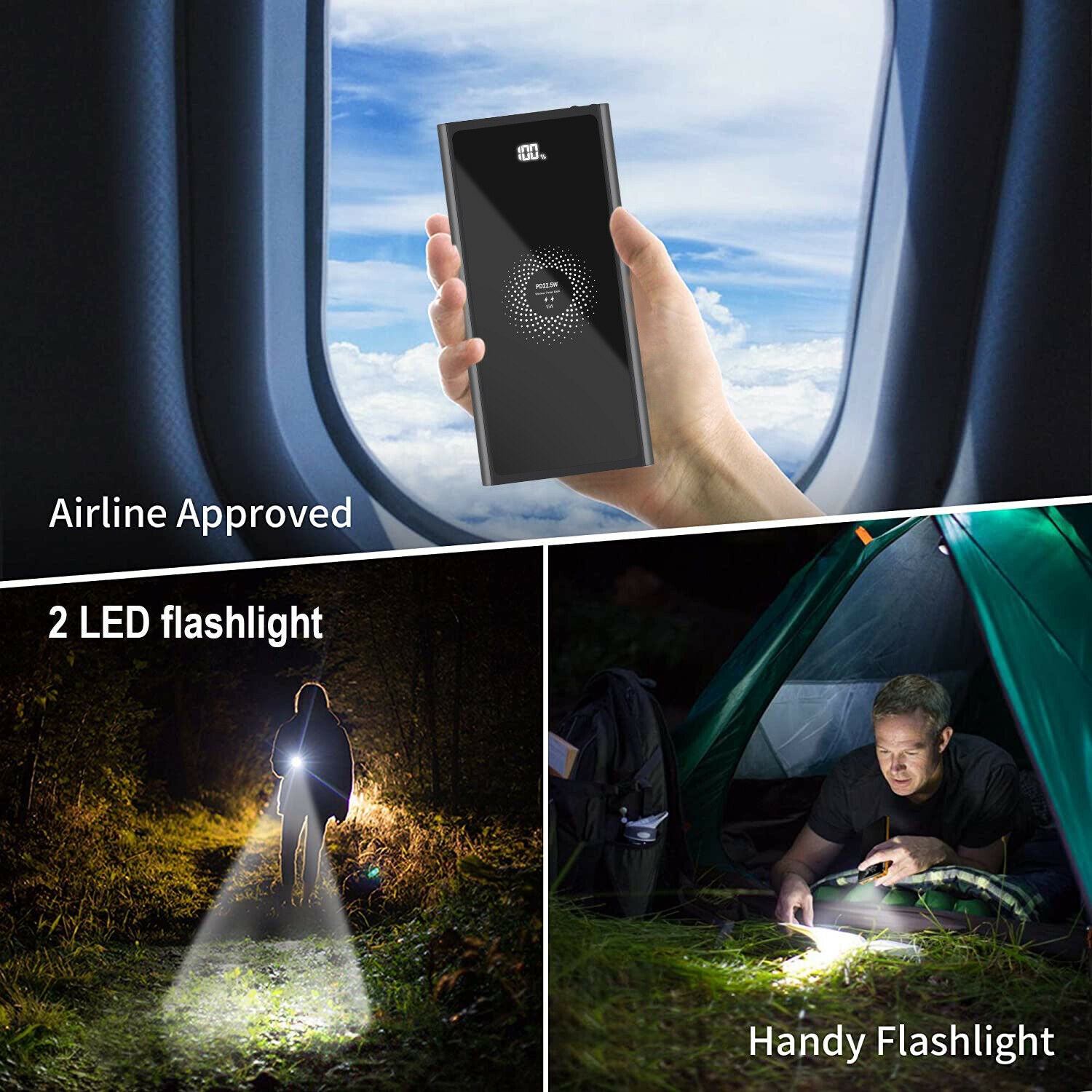• 1x 10000mAh 22.5W Fast Charger Power Bank Support 15W QI wireless Charging