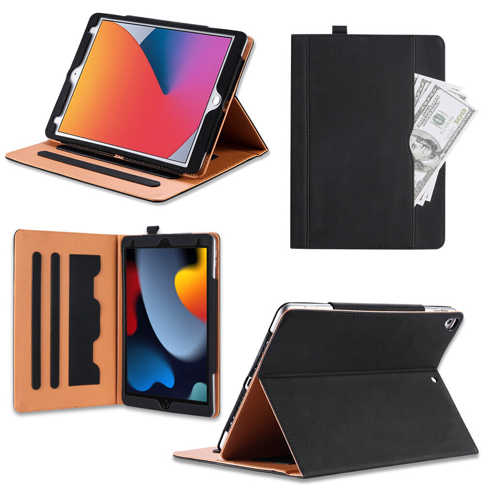 For iPad 9th Generation 2021 Leather Wallet Magnetic Smart Cover w/Pencil Holder