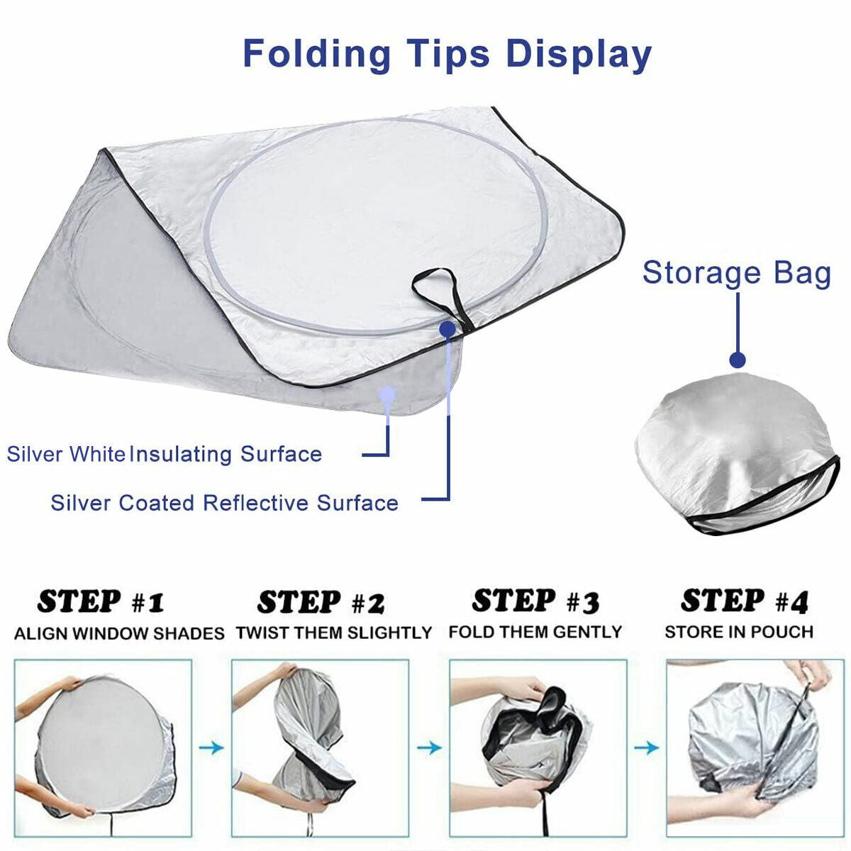 Compact Design Our car window shade comes with a free compact travel pouch. Installs and folds in seconds without any suction cups or adhesives. Store your Car sunshade in your door pocket, behind your sun visor or behind your car seat protector