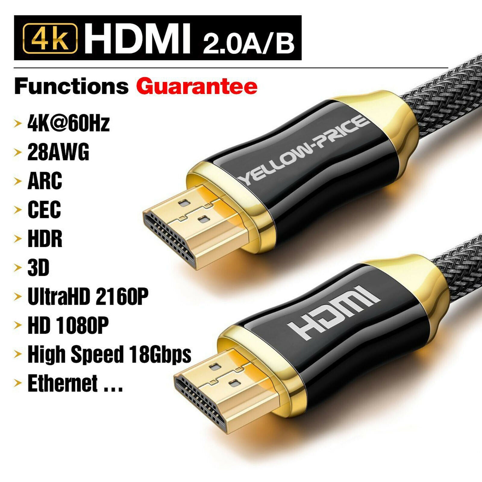 HDMI v2.0 Cable 3-30FT(4K @ 60Hz)Ready 28AWG Braided Cord High Speed 18Gbps LOT