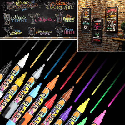 NEW 12 Colors Sets Liquid Chalk Art Marker Pens Boxed Metal Glass LED Writin-6mm