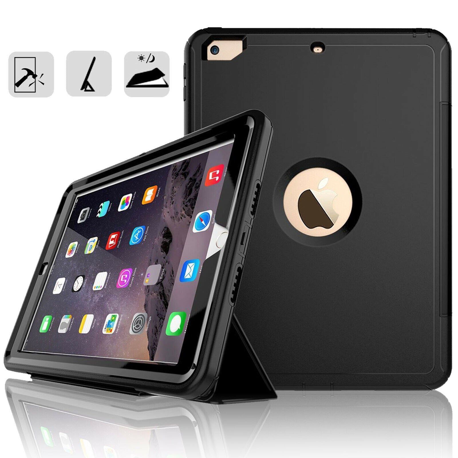 Hybrid Protective iPad Case - Shockproof Defender Case Cover for Apple iPad Air (Model:A1474/A1475/A1476) / Ipad Air 2 (Model:A1566/A1567) / iPad 5 2017 (Model: A1822/A1823) / iPad 6 2018 (Model:A1893) / iPad 2 (Model: A1395/A1396/A1397) / iPad 3 (Model:A1416/A1430/A1403) / iPad 4 (Model: A1458/A1459/A1460)