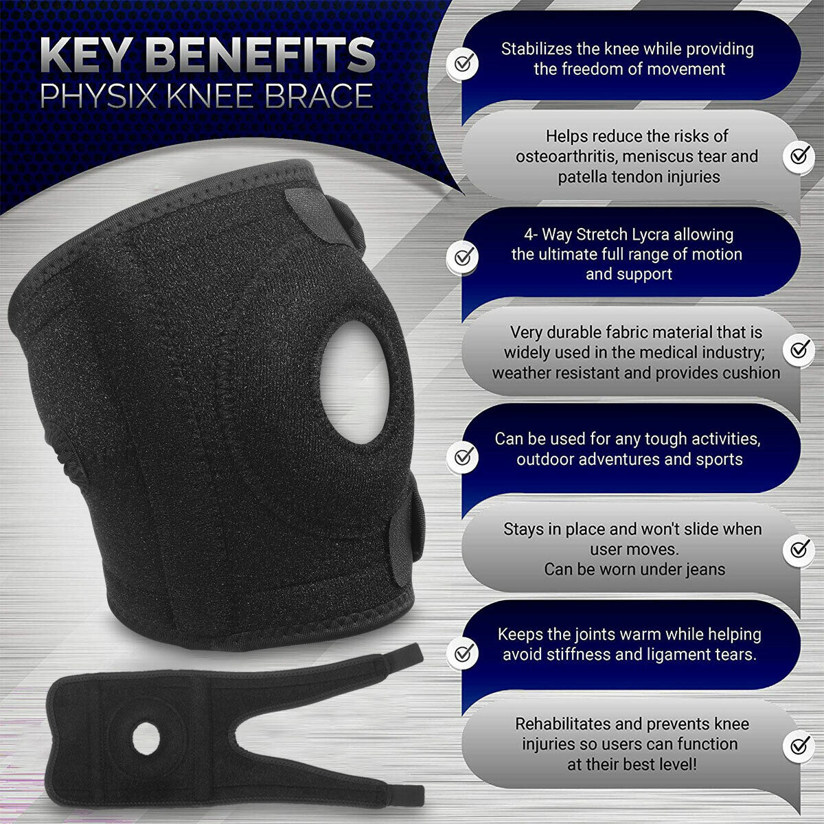 OPEN-PATELLA DESIGN relieves pressure and reduces stress on the knee-joint during intense exercise and heavy usage; effectively relieves acute & chronic knee pain from arthritis, strains, sprains, and fatigue