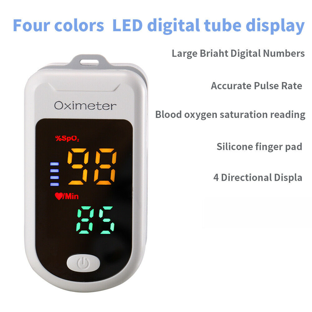 ACCURATE AND RELIABLE - Accurately determine your SpO2 (blood oxygen saturation levels), pulse rate and pulse strength in 5 seconds and display it conveniently on a large digital four colors LED display. Also, Two-direction display makes it fit to be viewed from any angle.