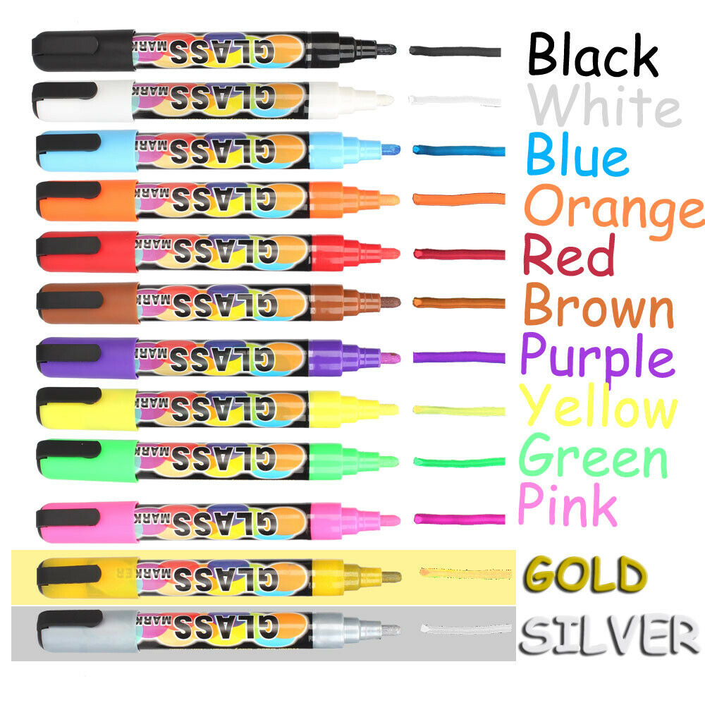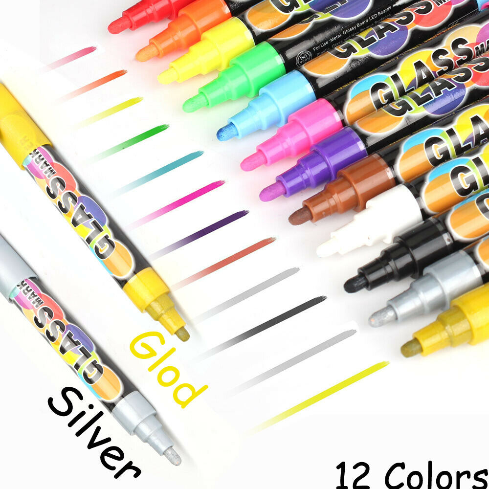 12x Erasable Liquid Chalk Window Markers & Metallic Colors Chalkboard Paint - CA