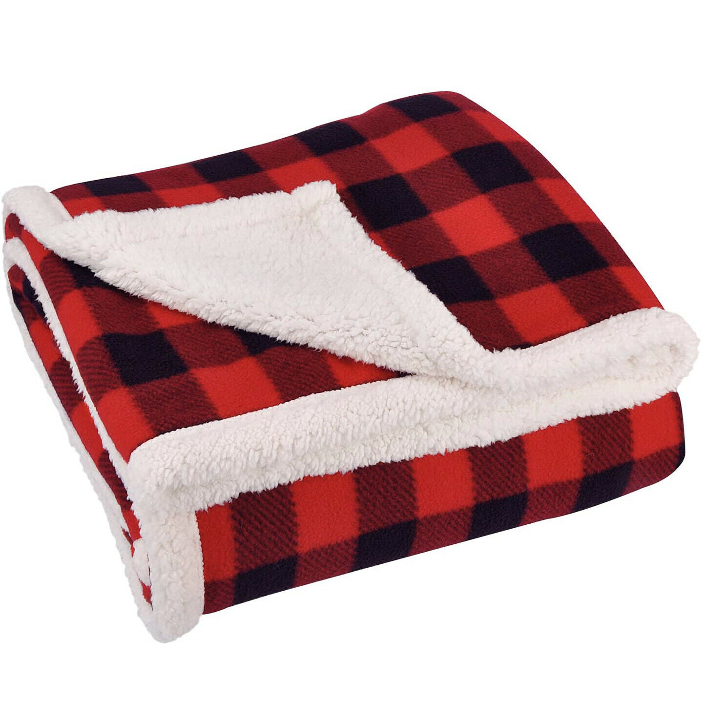 Sherpa Plaid Fleece Throw Blanket, Double-Sided Super Soft Luxurious, 50x60 in