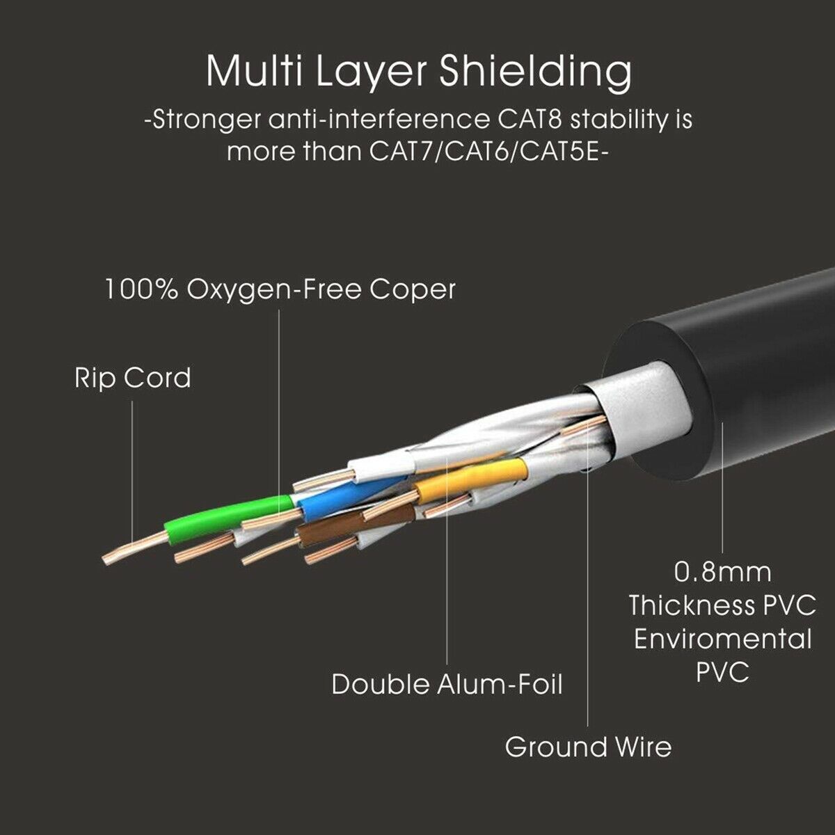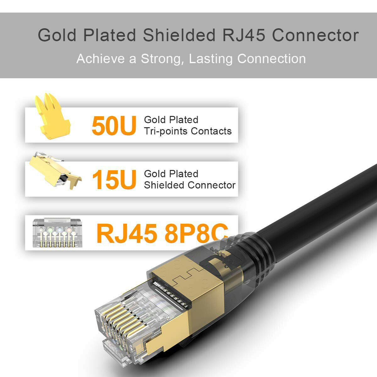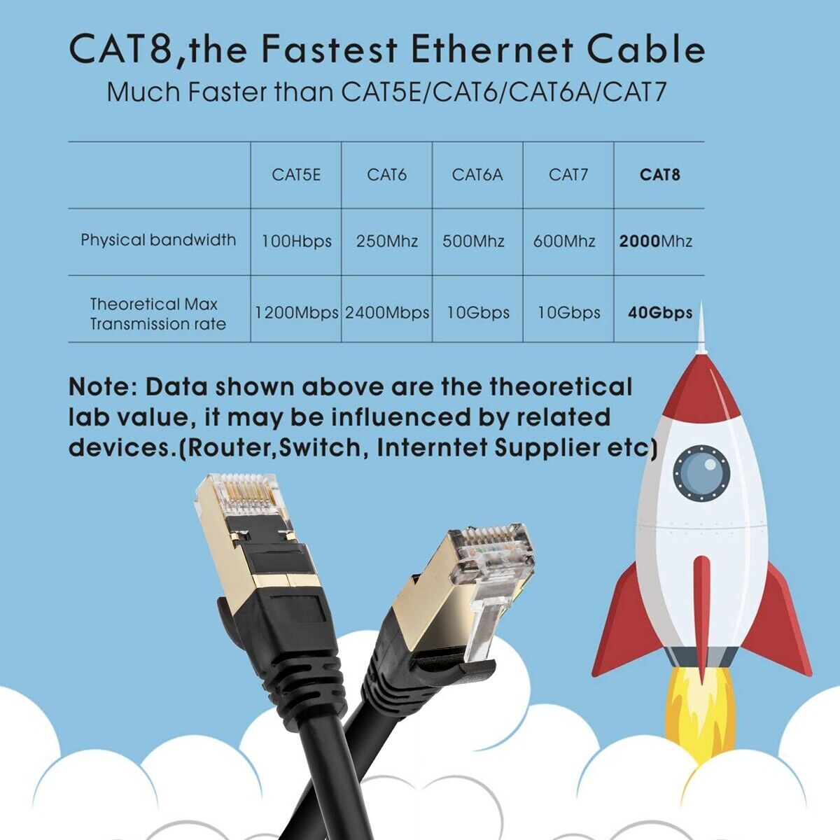 Cat 8 Ethernet cable Backward Compatible with Cat5, Cat5e, Cat6, Cat6a, Cat6e, Cat7, Cat7a cable standards.