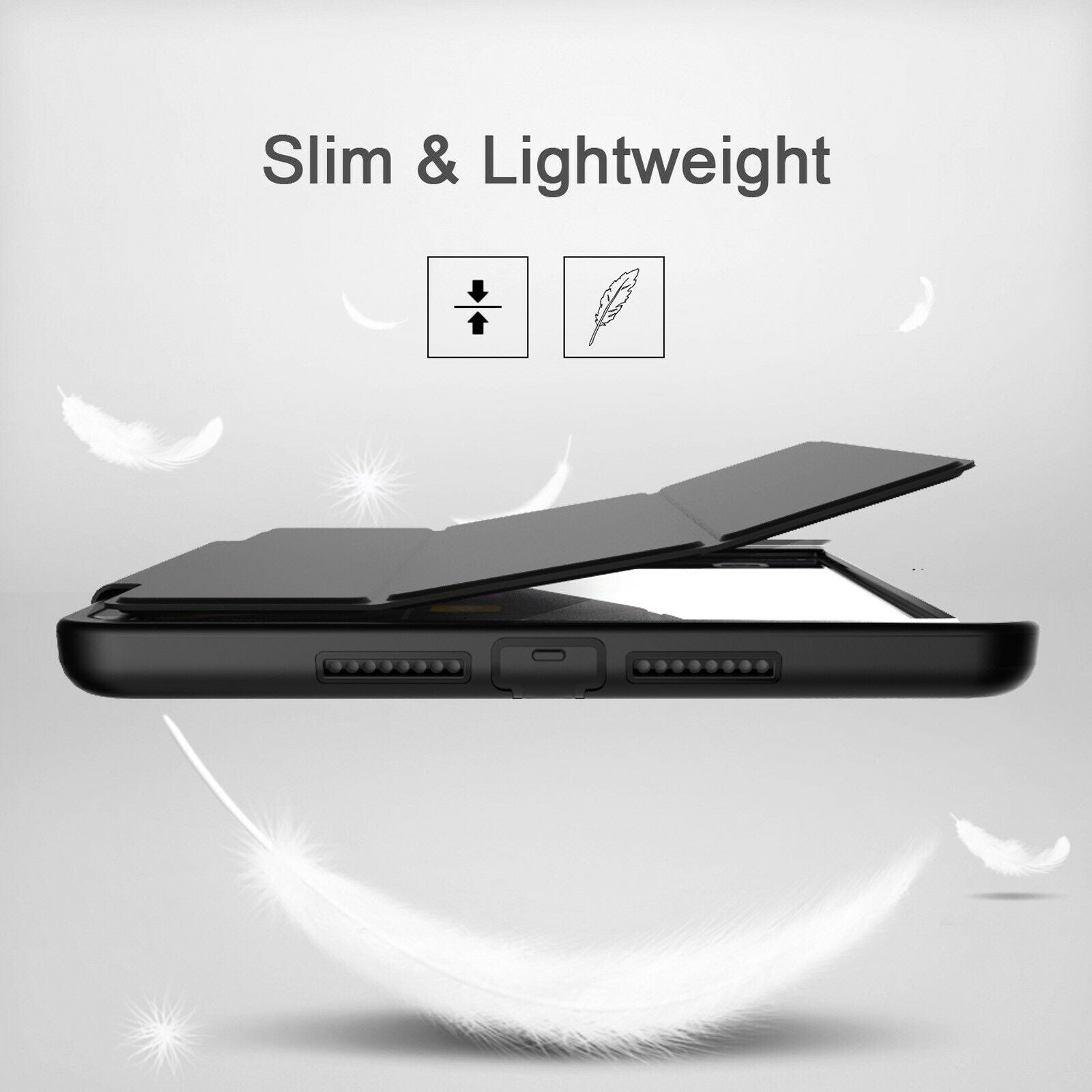 iPad Stand Case - Detachable magnetic flap can be used to stand the tablet on its side while watching a movie, or standing straight up to place on your desk for easy viewing.The tri-fold front cover can support iPad in two standing position for viewing and typing