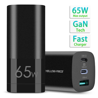 65W GaN PD Charger 3 Ports Wall Charger for Macbook Pro 13",iPhone 12, iPad Pro
