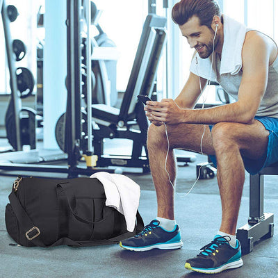 Lightweight Gym Sports Duffel Bag with Shoes Compartment & Wet Pocket, 34L Black