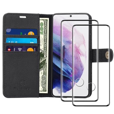 [Card Slot] Luxury Leather Wallet Case & 2xTempered Glass Films for Galaxy S21+
