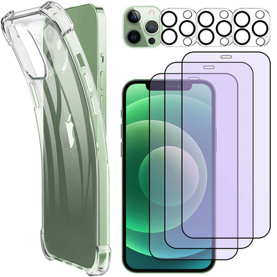 Clear TPU Case+ HD Eye Protection Tempered Glass+ Camera Lens Film for iPhone 12