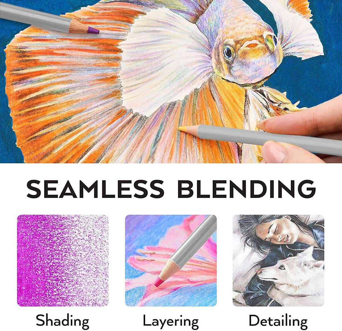 VIBRANT COLORS - These artist quality coloured pencils offer high-quality pigments for rich colour saturation. The soft yet thick core creates a smooth colour laydown for superior blending and shading while resisting breakage.