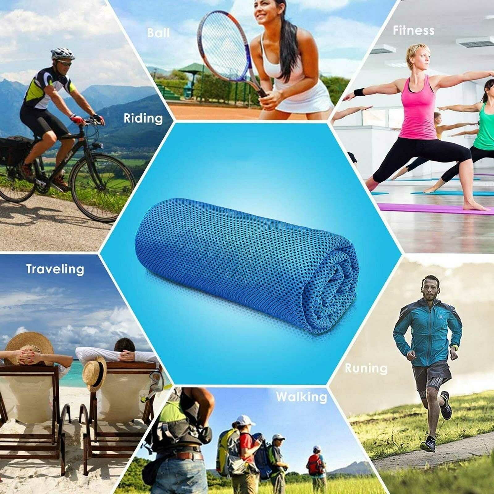 EXTRA LONG & MULTIPURPOSE SPORTS TOWEL - 40" long by 12" wide. It is easy to tie if you will be moving around a lot. Works like a charm as golf club head cover, cooling bandana or neck wrap. Longer inches make the towel perfect for athletes, runners, sports fans into workout, gym and fitness, females suffering with side effects of heat stress, hot flashes; patients who need cold therapy after operations, surgeries; gardeners doing yard work, mowing the lawn and workers working out in summer heat