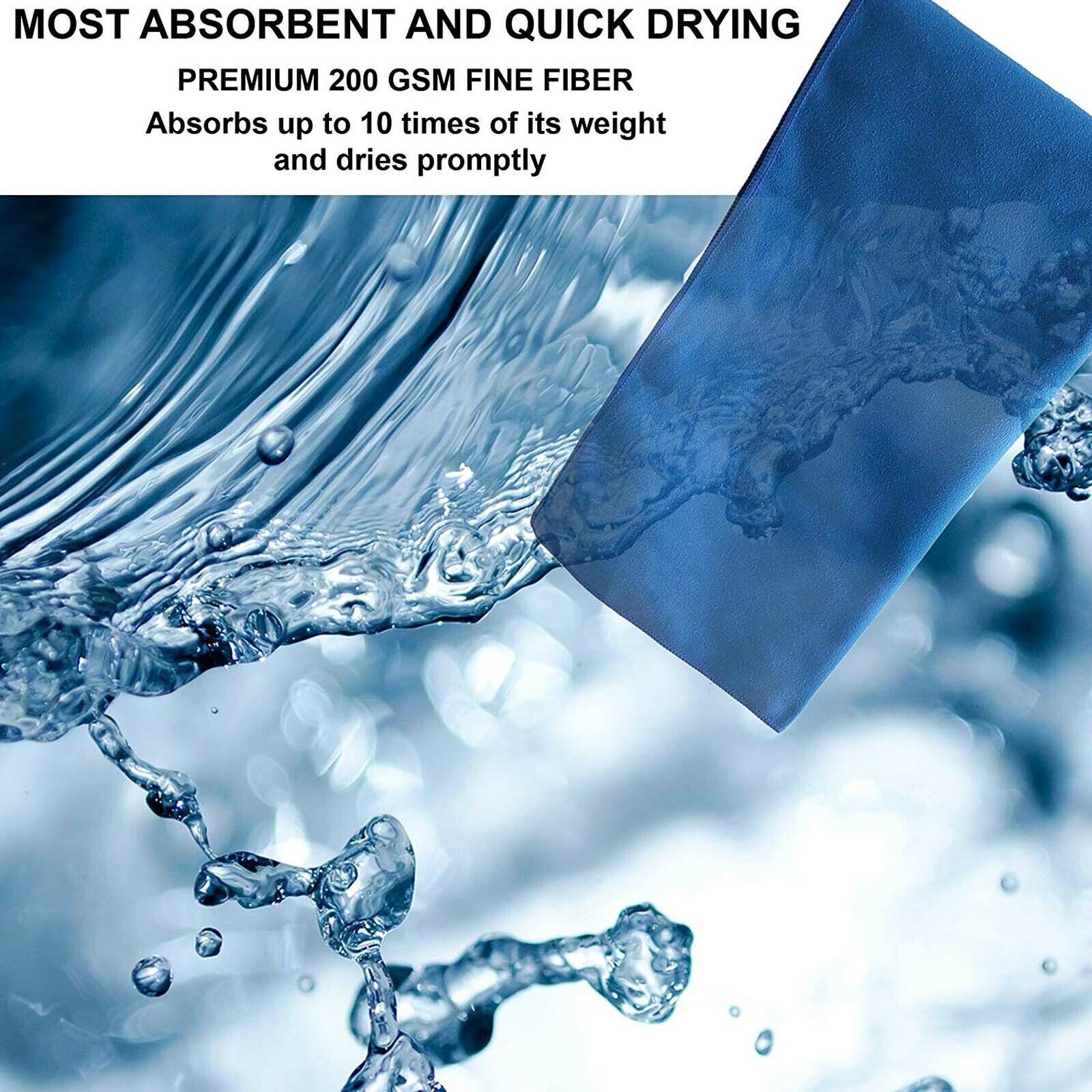 • SUPER ABSORBENT Microfiber Towel This new advanced microfiber fabric absorbs 7 to 9 times its weight in moisture and yet no matter how wet your towel gets, it dries out in no time at all (almost 300% faster than cotton). Don’t be worried about putting your “not quite dry towel” in your bag.