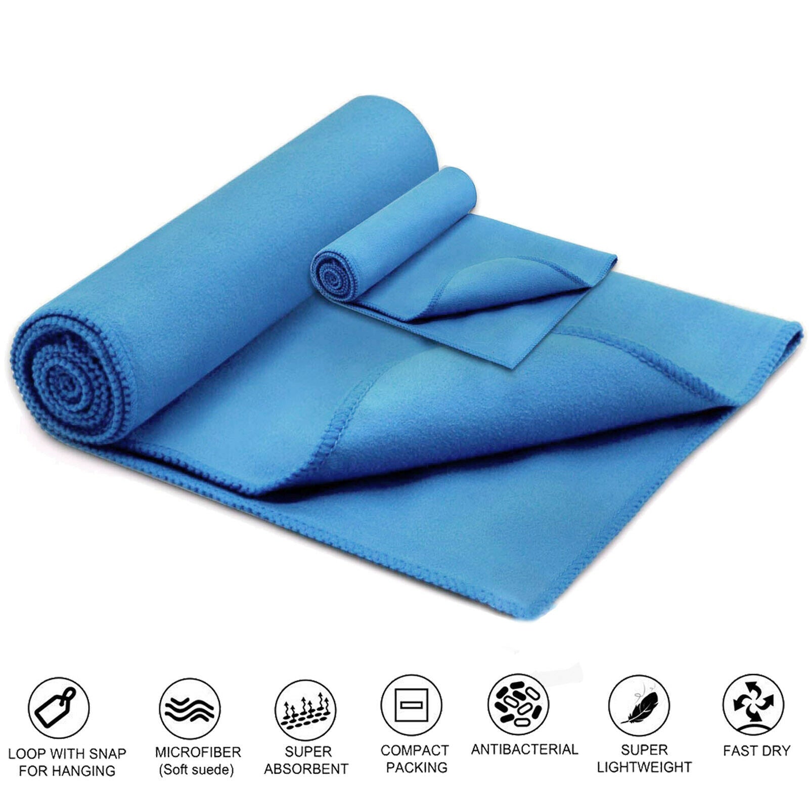 [2-Pack] Ultra Soft Compact Quick Dry Microfiber Fast Drying Bath Towel, Blue