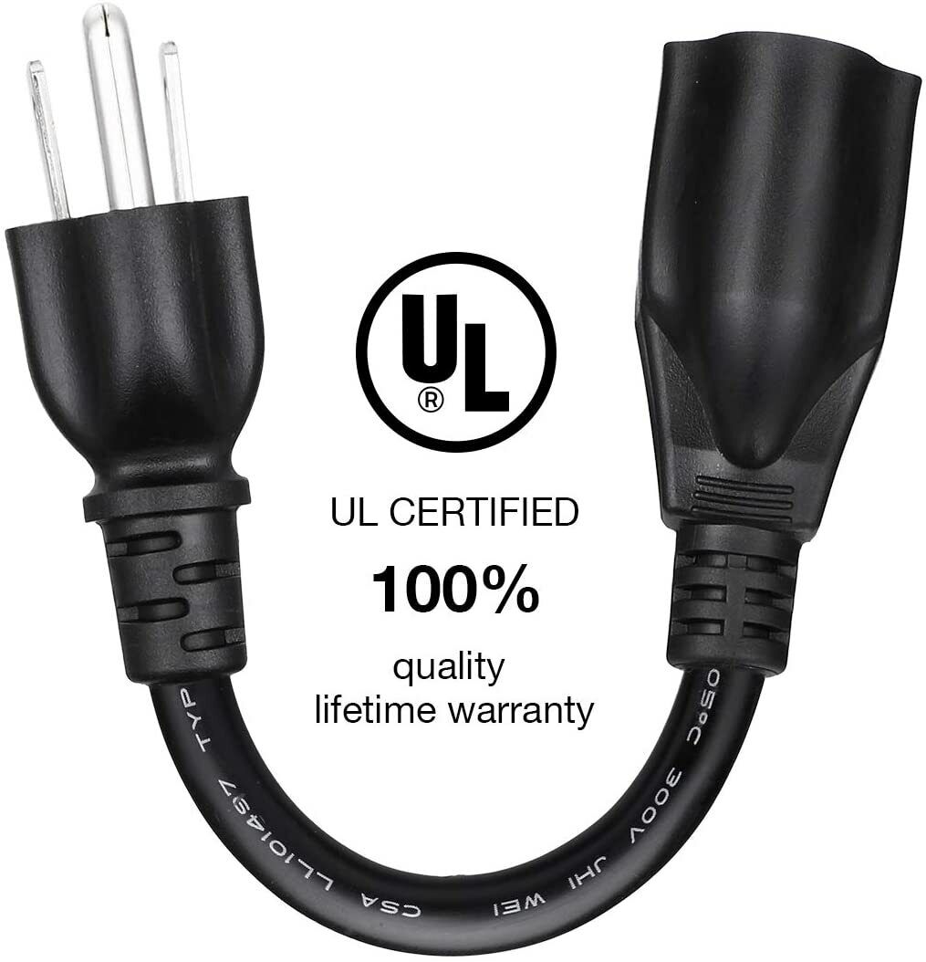 - SAFETY with this standard NEMA 15-5-P grounded power plug and 3 pin shrouded female IEC-320-C13 connector; SJT cable type is 10A/300V rated