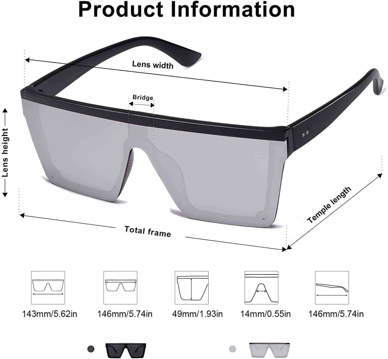 Temple length: 146mm(5.74inch)