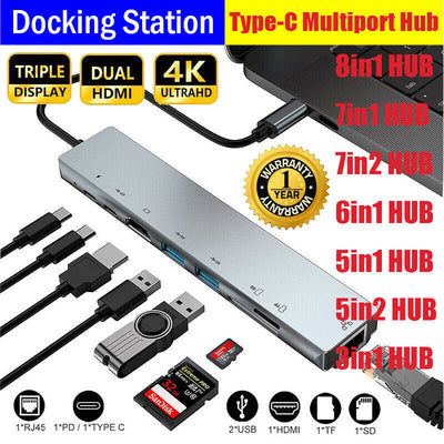 3/5/6/7/8in 1 Type C Hub to USB 3.0 HDMI PD Adapter Docking Station for MacBook