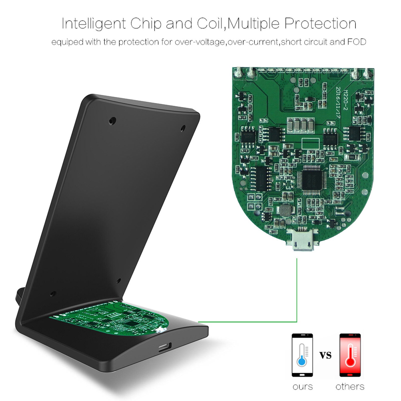Premium Design: Intelligent LED indicator shows the status of safety charging. The wireless charging stand will turn into blue for 2 seconds when it connect to the power, and will turn into green and stays when it start to charge the phone.
