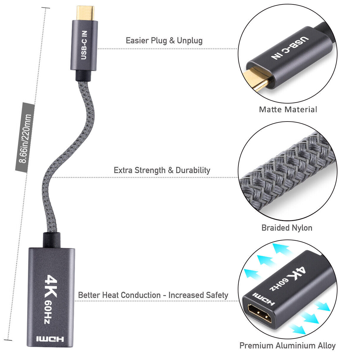 Friendly & Secure Design: Fully reversible USB-C interface, easy to plug and unplug, with user friendly anti slip design. High conductivity 24k gold-plated HDMI ports resists corrosion, ensuring rigidity and stable signal without any hysteresis or loss of data, 6ft may be the reasonable length of use for home, office and travel