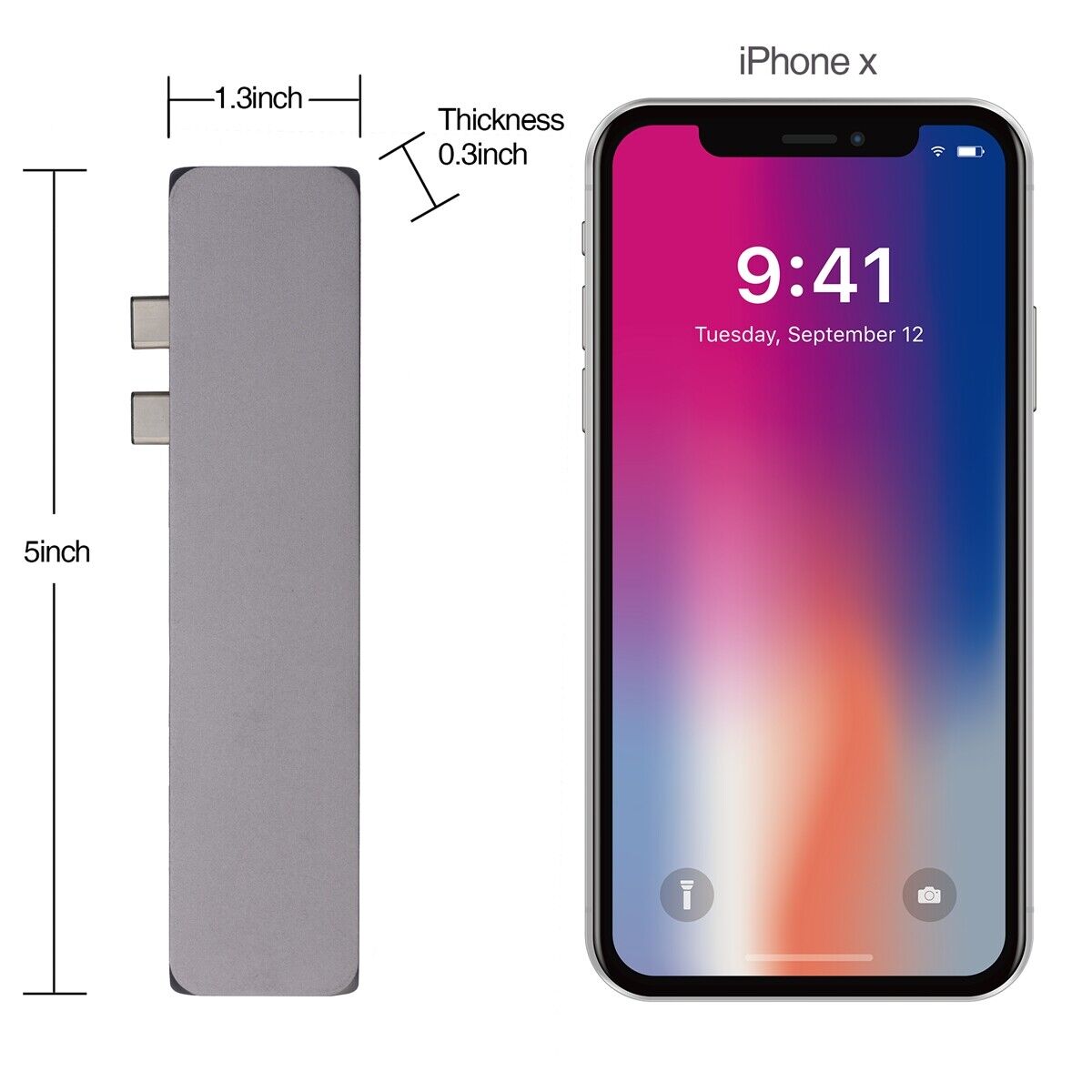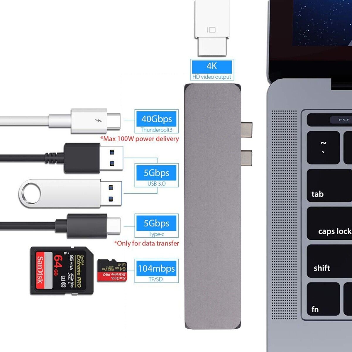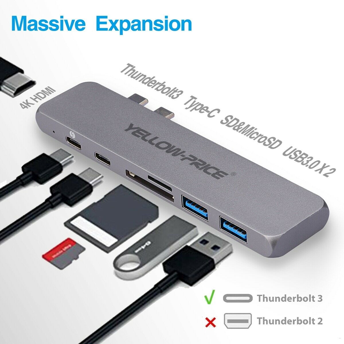 7in2 USB C Hub Adapter 50Gbps MacBook Pro/Air 2018 2017 2016 13" 15"