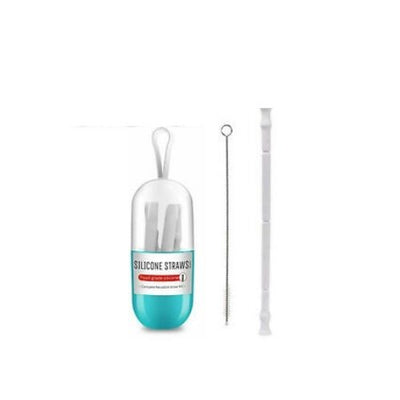 Reusable Collapsible Silicone Travel Drinking Straw with Case and Brush CAD