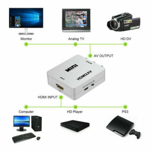 - The Mini HDMI to AV signal converter which will convert HDMI video signal or audio signal to AV(CVBS)composite video signal and the FL/FR stereo audio signals, while support DVI system sideline signals.