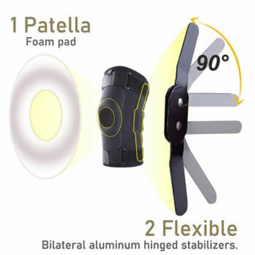 •  Dual pinned hinges: Our brace features dual pinned hinges. This allows the knee to bend in a far more natural motion than single pinned hinges.