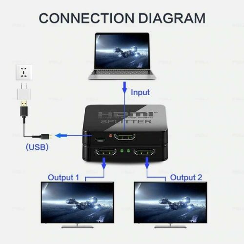New 1 in 2 out 1080p HDMI 4K HDCP Stripper 3D Splitter Power Signal Amplifier CA