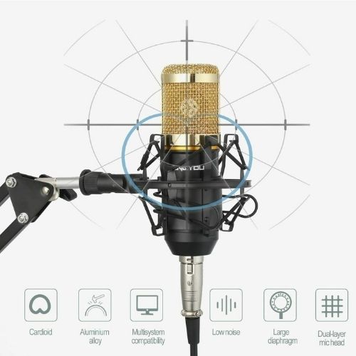 Condenser Microphone Bundle Kit Studio Audio Recording with Adjustable Arm Stand